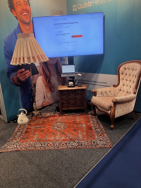 Deze keer was de beurs verstopt achter respectievelijk de Zorg& Food- hal of de Zorg&Facility plus Zorg&HR hal. Daar moest je je eerst doorheen werken om de zegeningen van de zorgICT te kunnen ervaren. Ik kan me nog van 2023 herinneren dat je vanaf de entree door een korte zwarte tunnel liep en dan opeens ondergedompeld werd in het intense beursgedruis van de Zorg&ICT-standhouders en bezoekers. Nu moest ik me via de “main road” langs Albert Hein en Jumbo verplaatsen onder het opsnuiven van uiteenlopende geuren van ter plekke in diverse stands klaargemaakte maaltijden. Het deed afbreuk aan de impact die een ICT-beurs op je maakt.